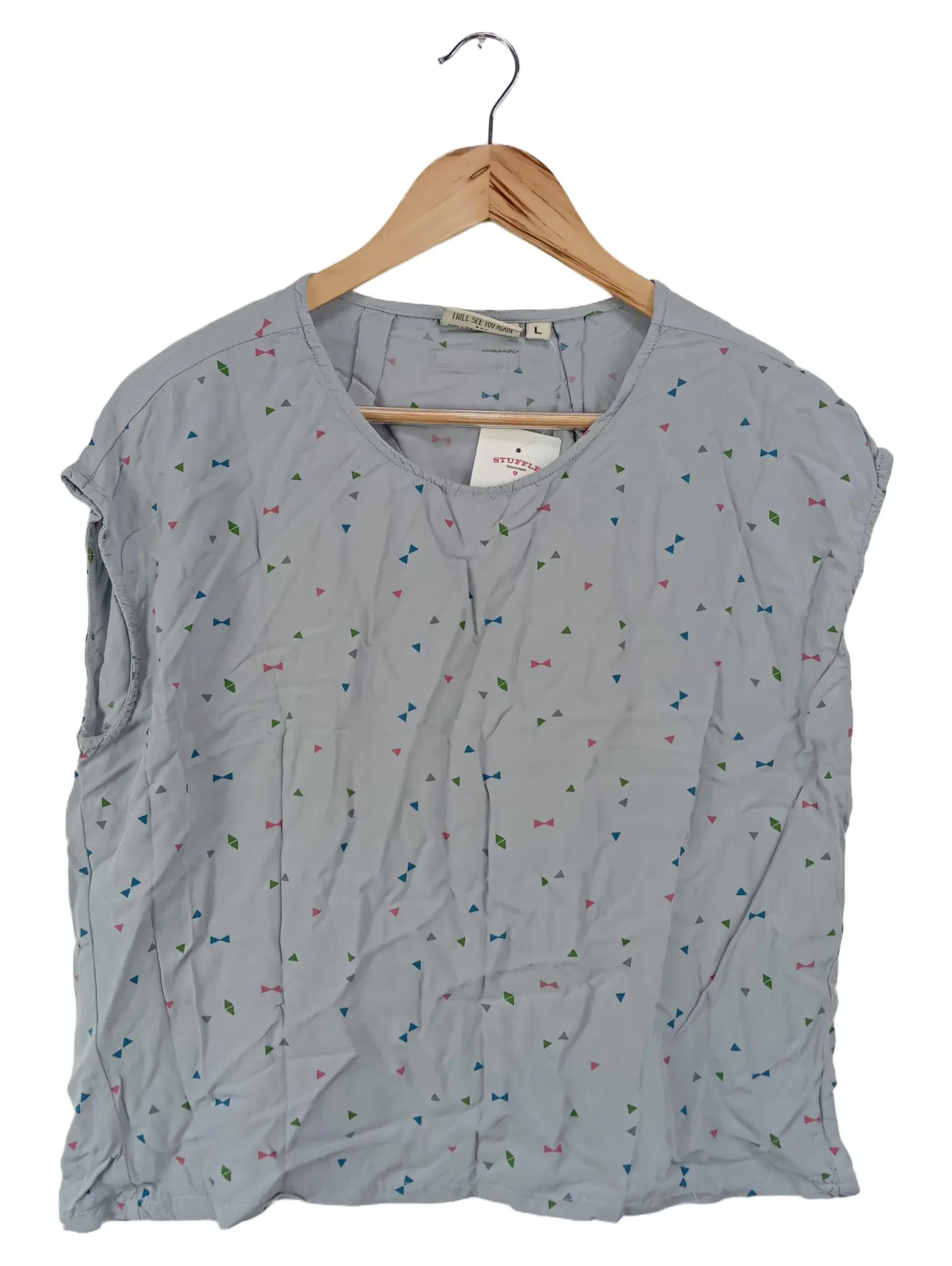 NAKETANO Damen T-Shirt L Blau Casual Modern Logo-Print