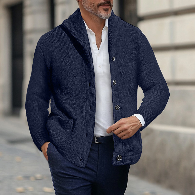 Men's Cardigan Sweater Cropped Sweater Knit Sweater Ribbed Knit Tunic Pocket Plain Shawl Collar Fashion Classic Daily Wear Date Clothing Apparel Fall Winter Black Navy Blue S M L