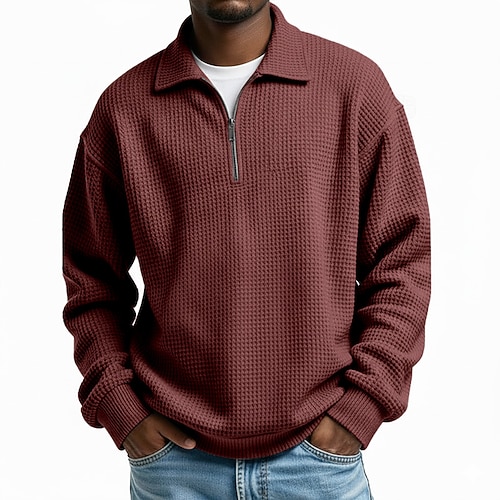 Per uomo Maglia Felpa a nido d'ape Maglione Felpa con zip corta Aalbicocca Nero Bianco Verde chiaro Borgogna Colletto Mao Semplice Tasca a marsupio Testurizzato Casuale Quotidiano Sport Outdoor