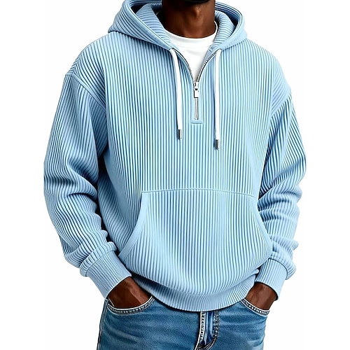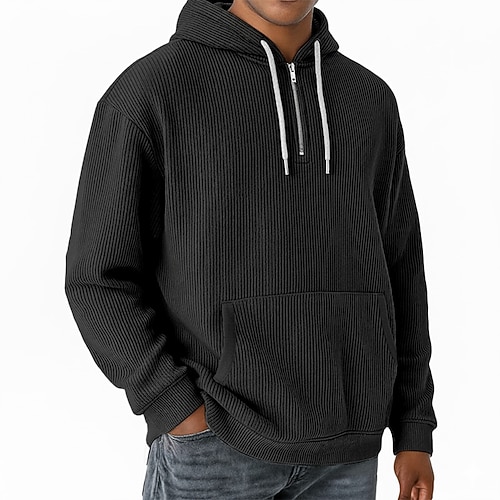 Per uomo Felpa con cappuccio Velluto a coste Felpa con cappuccio e zip corta Aalbicocca Rosso bordeaux Nero Bianco Blu marino Con Cappuccio Semplice Tasca a marsupio Testurizzato Casuale Quotidiano