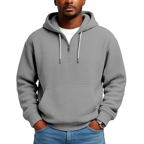 Per uomo Felpa con cappuccio Felpa con cappuccio a nido d'ape Maglione Aalbicocca Rosso bordeaux Nero Bianco Blu marino Con Cappuccio Semplice Tasca a marsupio Testurizzato Casuale Quotidiano Sport