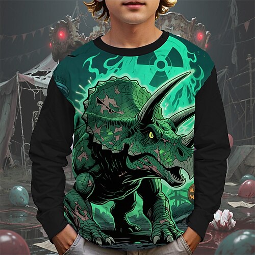 Halloween Jungen 3D Cartoon Dinosaurier T-Shirt Langarm Frühling Herbst Mode Basic Kinder 4-12 Jahre Rundhalsausschnitt Outdoor Lässig Täglich Normale Passform