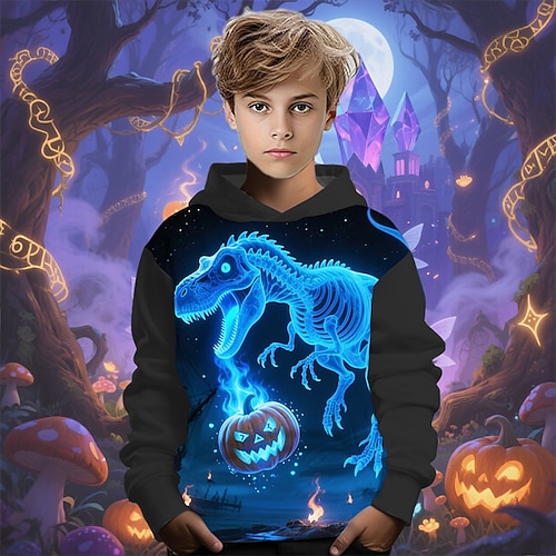 Halloween Jungen 3D Kürbis Dinosaurier Kapuzensweatshirt Langarm Frühling Herbst Mode Streetwear Kinder 4-12 Jahre Mit Kapuze Outdoor Lässig Täglich Normale Passform