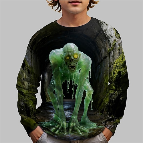 Halloween Jungen 3D Schädel Sweatshirt Langarm Frühling Herbst Mode Basic Kinder 4-12 Jahre Rundhalsausschnitt Outdoor Lässig Täglich Normale Passform