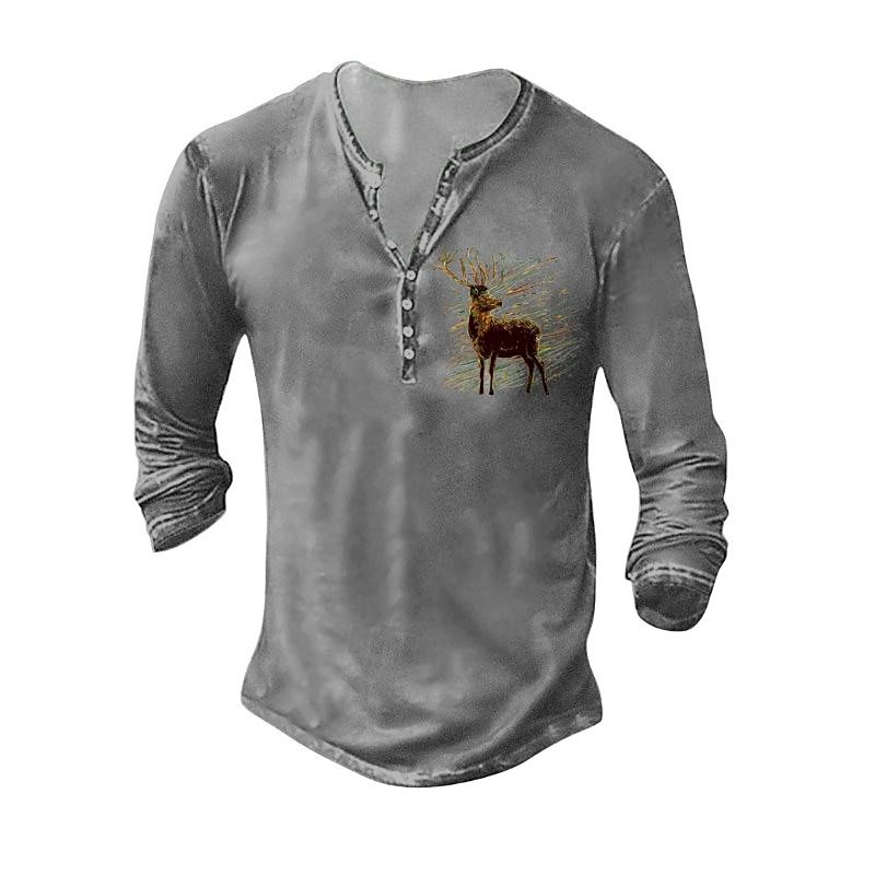 Men's Henley Shirt Tee Tee Top Long Sleeve Shirt Long Sleeve Henley Summer Fall Pattern Deer Fashion Designer Fashion Vintage Vacation Street Going out Dark Grey Black White Top Tee for Men