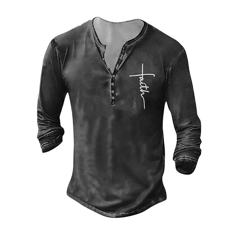 Men's Henley Shirt Tee Tee Top Long Sleeve Shirt Long Sleeve Henley Summer Fall Pattern Faith Fashion Designer Fashion Vintage Vacation Street Going out Dark Grey Black White Top Tee for Men