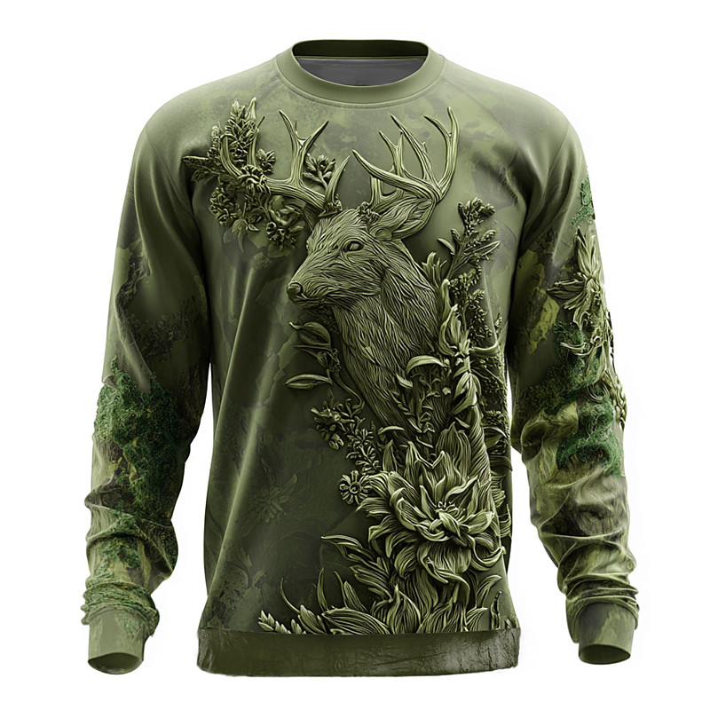 Men's Leaf Relief Pattern Deer Sweatshirt Casual Long Sleeve Crew Neck Vacation Party Gift Burgundy Blue Brown Green Crewneck 3D All Seasons Designer S M L XL XXL XXXL