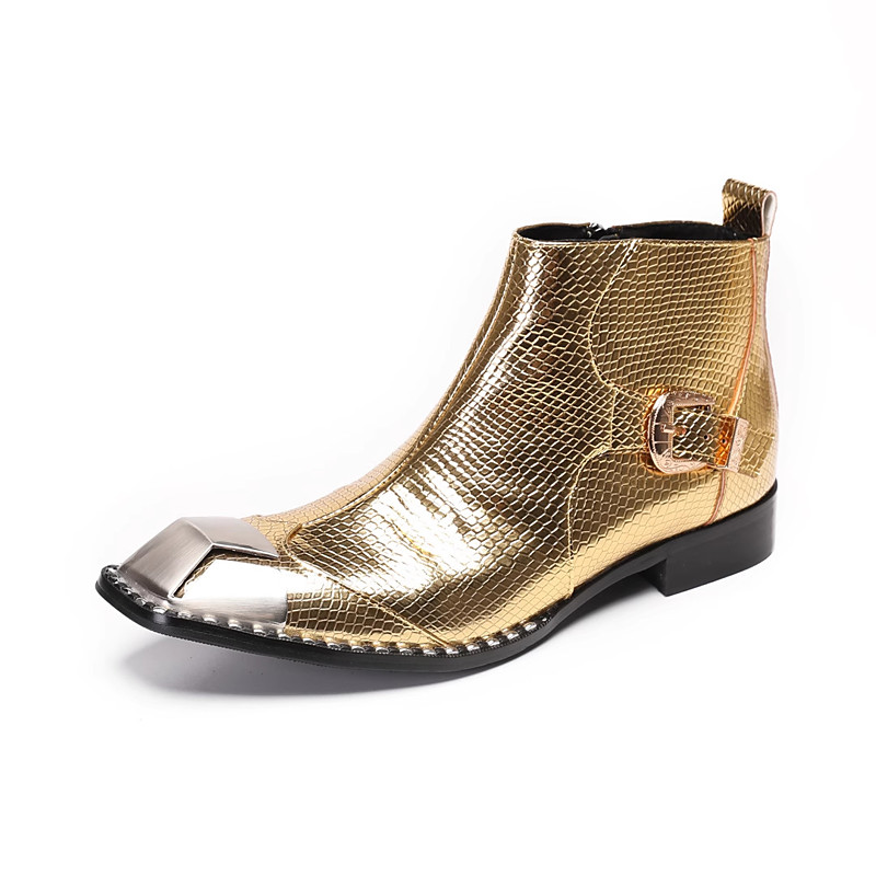 Men's Black Snake-Patterned Leather Boots with Silver Buckles – Unique Design for Trendsetters, Suitable for Parties and Special Events
