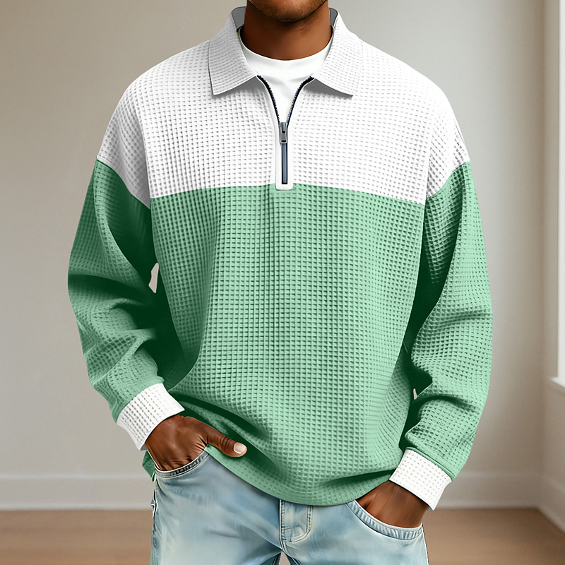 Men's Waffle Polo Shirts Textured Casual Holiday Lapel Long Sleeve Cool Plain Classic Style Fall Spring Fall All Seasons Regular Fit White Light Green Light Blue Red Navy Blue Purple Waffle Polo