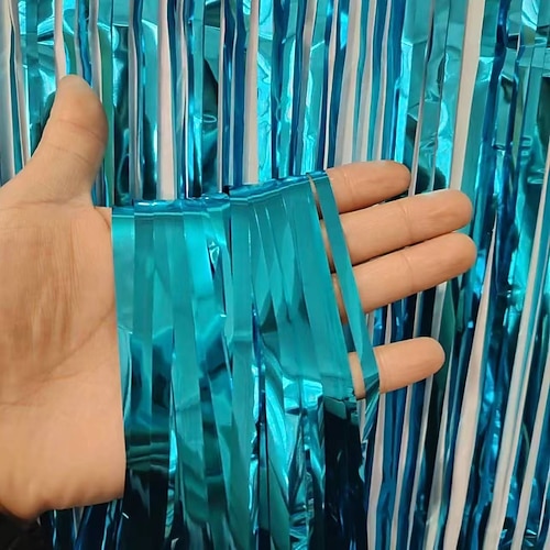3er-Pack Folien-Fransen-Hintergrundvorhänge, 1 x 2 m große Lametta-Luftschlangen, Partydekorationen, Fransen-Hintergrund für Geburtstage, Babypartys, Gender-Reveal-Partys, Abschlussfeiern