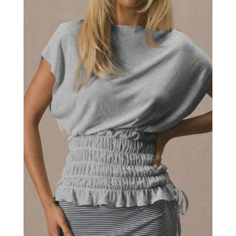 Women's T Shirt Plain Elegant Fashion Classic Short Sleeve Crew Neck Regular Tops Daily Going out Weekend Tunic Elastic Waist Black White Gray Summer Spring