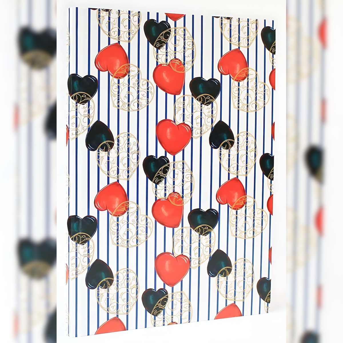ADINA Notizbuch A4 fester Deckel Lin gepunktet schwarz rote Herzen