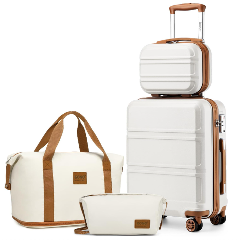 Kono Suitcase Lightweight ABS Hard Shell Carry-Ons Cabin Case with TSA Combination Lock Luggage Sets of 4 Piece Included Weekender Bag & Toiletry Bag for Travel (Cream White)