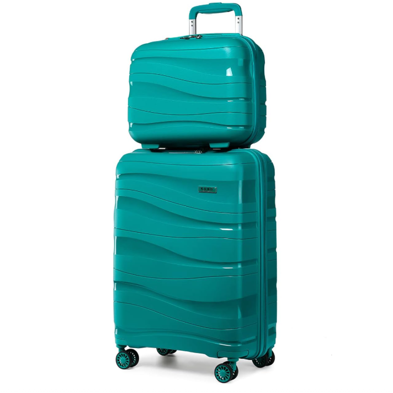 Kono Luggage Sets of 2 Piece Lightweight Polypropylene Hard Shell Suitcase with TSA Lock Spinner Wheels Travel Carry On Hand Cabin Luggage with Beauty Case (Set of 2, Turquoise)