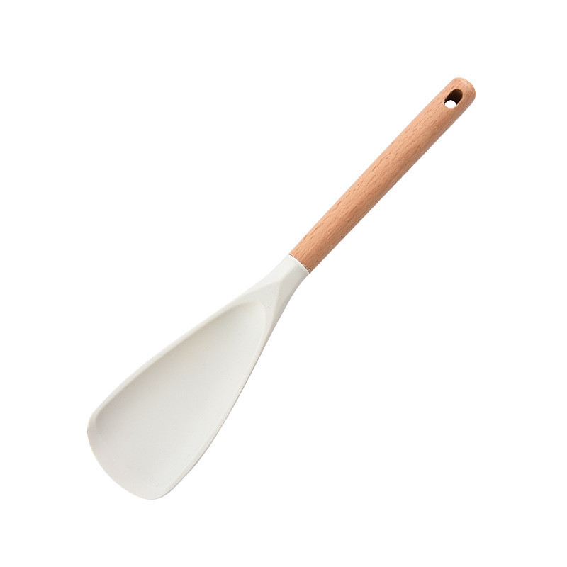 Multifunctional Spatula Spoon with Ergonomic Wooden Handle - Durable Nonstick Safe Kitchen Utensil for Cooking, Serving, Flipping Pancakes, Stirring Soup, Mixing Batter - Black White Options