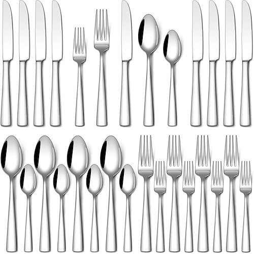 Set di posate da 20/30 pezzi, set di posate in acciaio inossidabile per uso alimentare per 4 posate lucidate a specchio, set di utensili che includono coltelli da tavola, cucchiai e forchette,