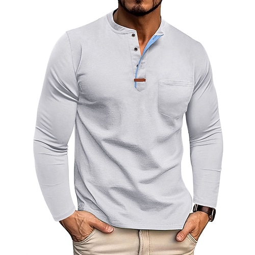 Per uomo Maglietta Maglia Henley Camicia a Maniche Lunghe Manica Lunga Henley Primavera Autunno Semplice Moda Designer Essenziale Tasche Bottoni Vacanza Streetwear Uscire Nero Bianco Vino Maglietta