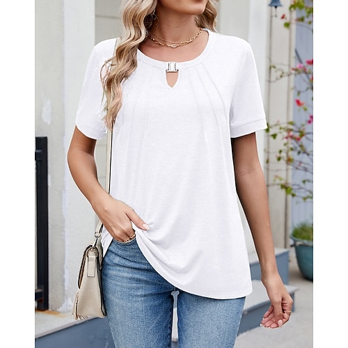 Per donna Maglietta Tinta unica Moda Classico Casual Manica Corta Girocollo Top Regolari Quotidiano Uscire Weekend Nero Bianco Rosa Vino Blu marino Estate Primavera
