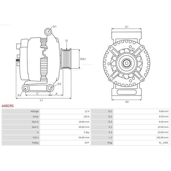 Laturi 12V 120A As-pl A6829S - alfa romeo mito, fiat 500l, punto, tipo halvkombi, tipo kombi - OE 51922437