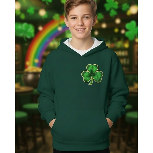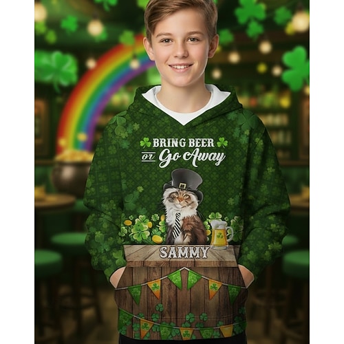 Giorno di San Patrizio Ragazzi 3D Grafico Giorno di San Patrizio Felpa con Cappuccio Maglione Manica Lunga Stampa 3D Primavera Autunno Sport Moda Streetwear Bambini 4-12 Anni Con cappuccio Casuale