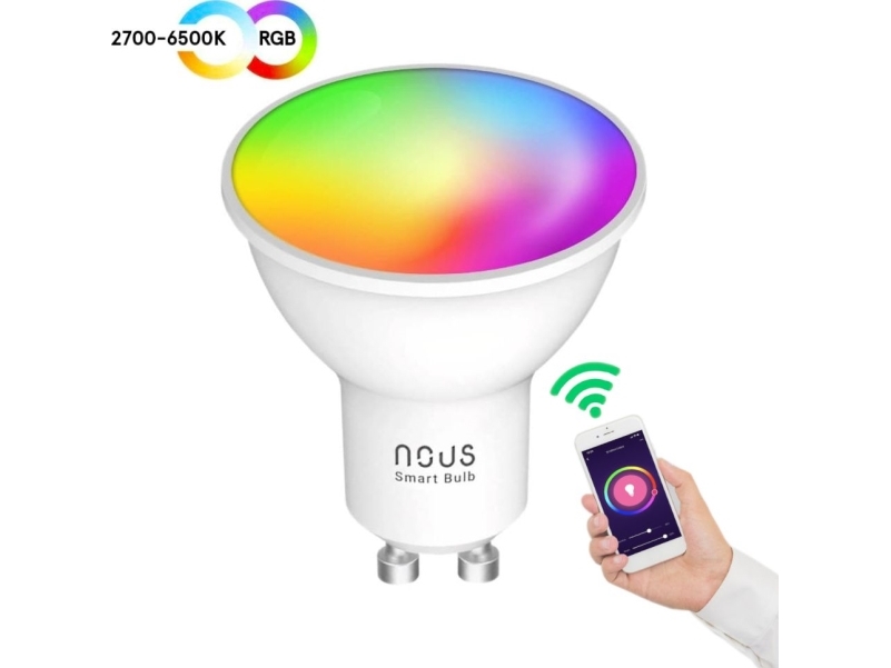 LED-lamppu GU10, 230V, 4,5W, 350lm, 2700K - 6500K, RGB, älykäs Wi-Fi, sovellusohjaus, TUYA / Smart Life, P8, NOUS