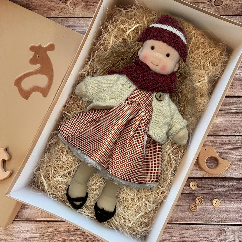 Handmade Waldorf Doll Baby Girl with Clothes Sets - 11.8 Inch Soft Plush Doll for Toddlers Ideal Christmas Gift for Kids