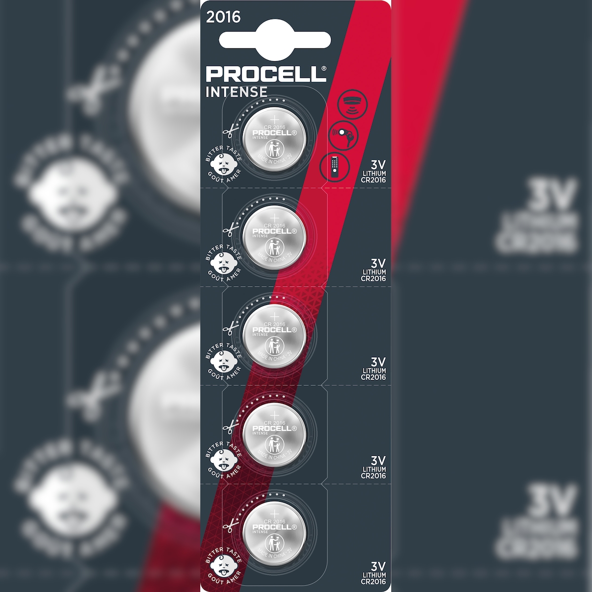 DURACELL Procell Batterie Lithium, Knopfzelle, CR2016, 3V Intense, Retail-Blister (5-Pack)