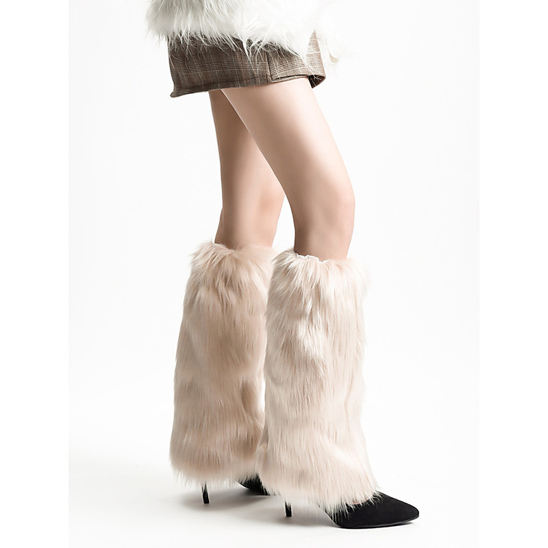 Faux Fur Boot Cuff Warmers – Cozy Knit Boot Socks with Fluffy Top, Winter Fashion Accessories for Women