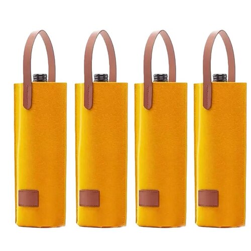 set di 4 borse per bottiglie di vino in feltro con fondo rinforzato e manico in similpelle - confezione regalo premium per vino, borse riutilizzabili grigie di lusso, ideali per regalare borse per