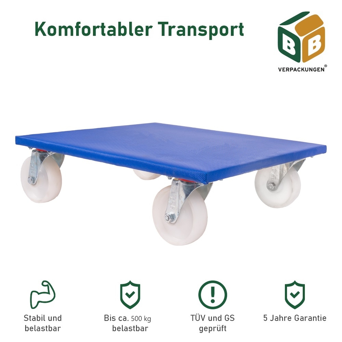 1 x Möbelroller (600 x 500 x 165 mm) 500 kg Traglast Kunststoff-Lenkrollen spurloses Rollverhalten Möbelhund BB-Verpackungen