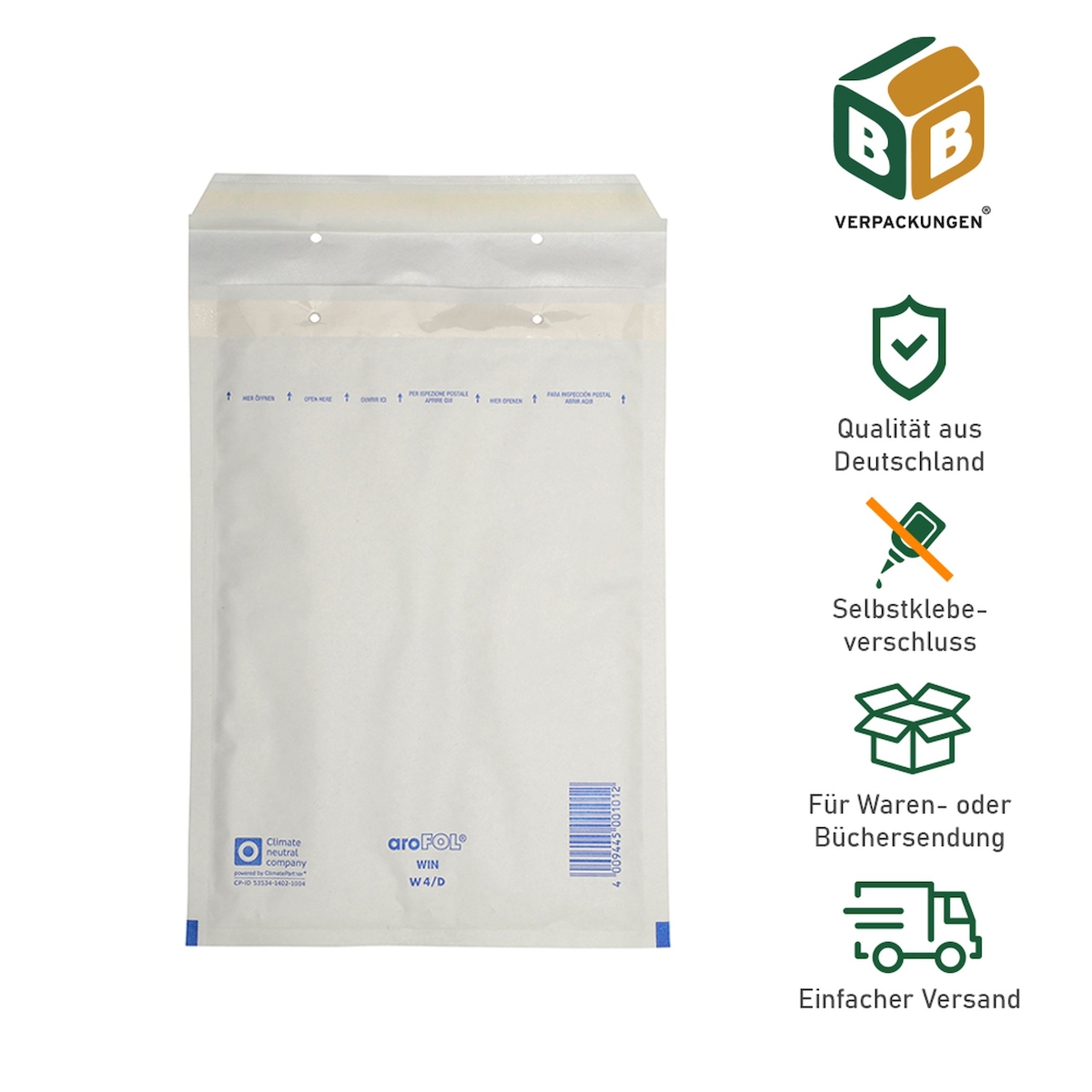BB-Verpackungen GmbH 800 x Luftpolsterversandtasche mit Fenster 4 / D (180 x 265 mm) Versandtasche gepolsterte Briefumschläge Polsterversandtaschen BB-Verpackungen