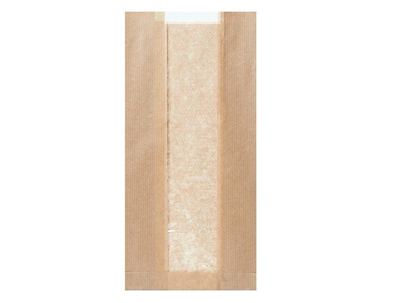 1000x Bäckerbeutel mit Sichtstreifen 160 + 80 x 320 mm braun (308642)