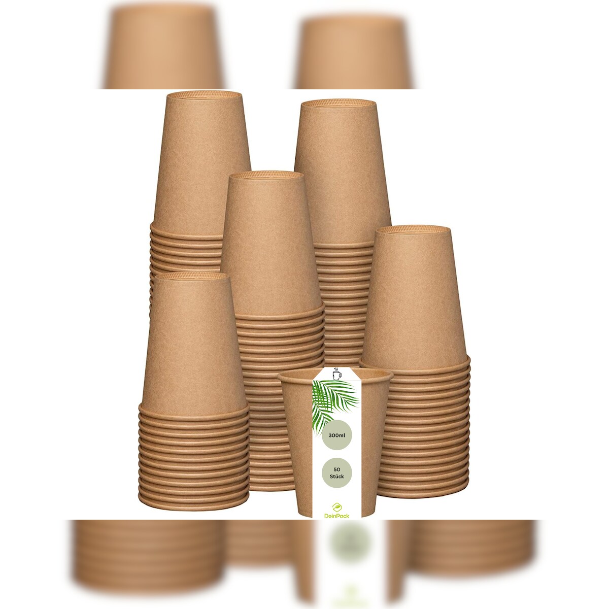 DeinPack Umweltfreundliche Kaffeebecher 50 Stück 300 ml 12 oz Pappbecher braun