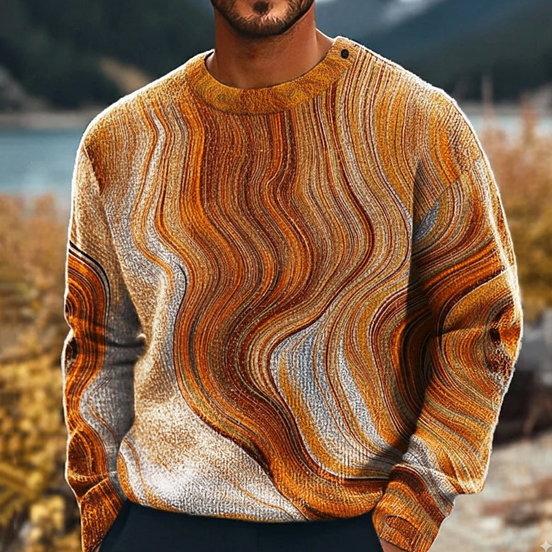 Men's Abstract Flowing Quicksand / Liquid Pullover Sweater Jumper Knitwear Crewneck Casual Vacation Home Street 3D Print Knitting Keep Warm Long Sleeve Spring Fall Winter Blue Orange Multi Color