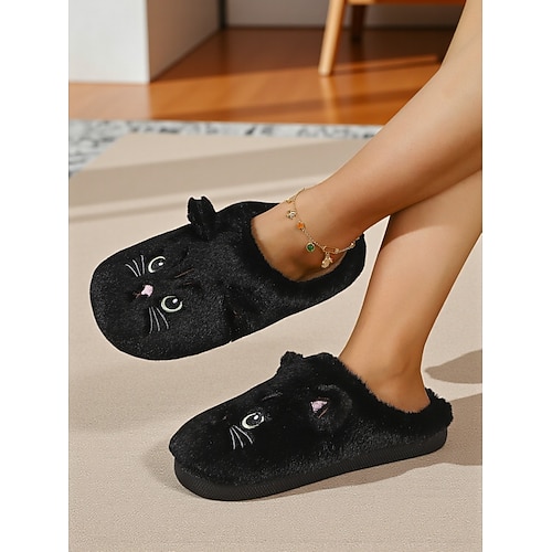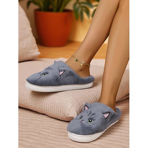 pantofole da donna a forma di gatto in peluche: comode pantofole da casa in pelliccia con un grazioso design a forma di animale per l'inverno e il comfort domestico
