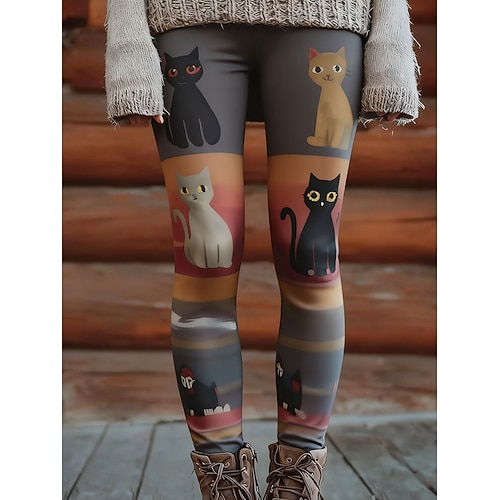 Per donna Leggings Abbigliamento da casa Vacanza Vintage Stile Etnico Lunghezza intera Vita Alta Grafico Gatto Stampa Asciugatura Rapida Traspirabilità Morbido Elasticizzato Formale All'aperto Vacanza