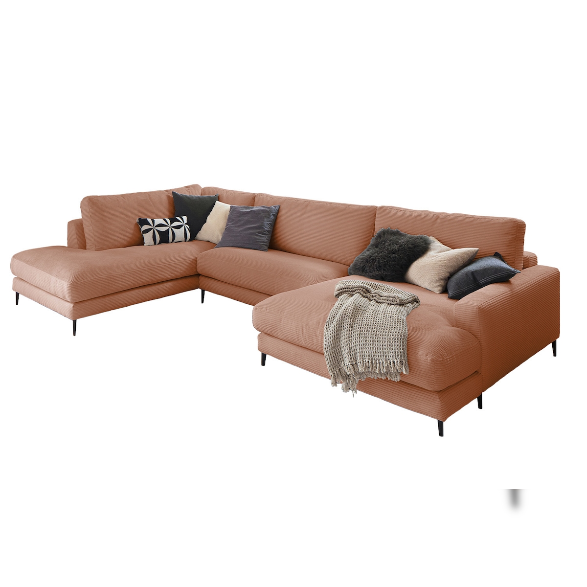 KAWOLA Sofa CARA Wohnlandschaft U-Form Cord rost Longchair rechts