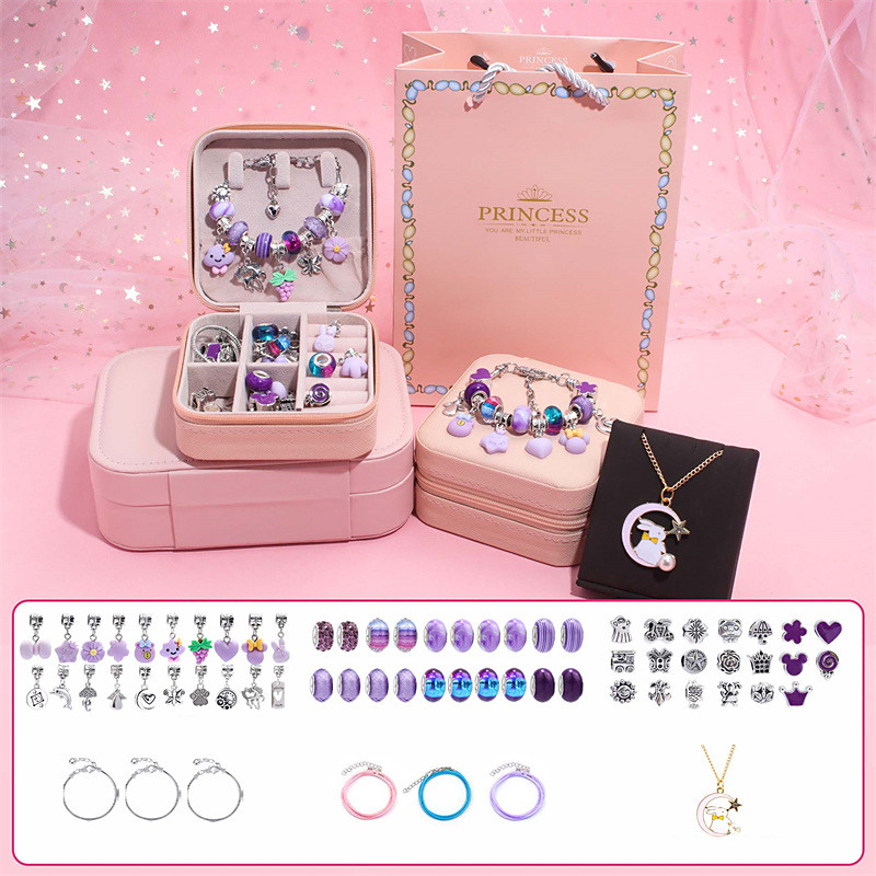 Hot-selling children's handmade diy beaded bracelet gift box set cute multicolor animation pendant resin bracelet jewelry Christmas Gift