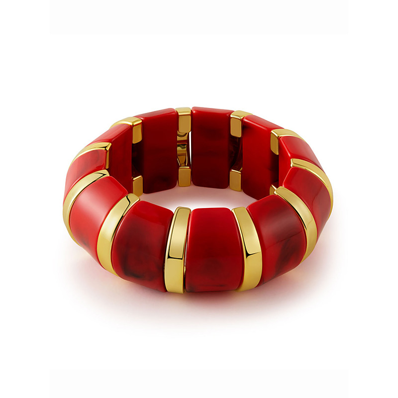 Women's Acrylic Stretch Bracelet with Gold Accents, Chunky Resin Bangle in Multiple Colors, Stylish Christmas Jewelry Gift for Parties Holiday Outfits