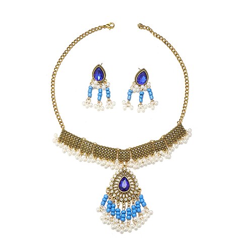 set di gioielli vintage con perle e pietre preziose: collana girocollo con turchese e perle e orecchini pendenti per donna