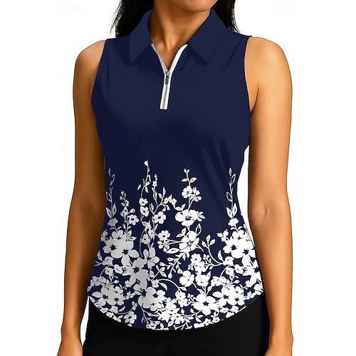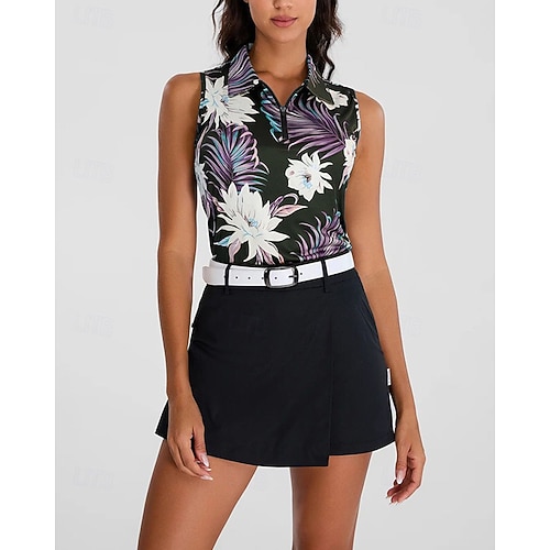 Per donna Grafico Tropicale Motivo Floreale Maglietta sportiva Polo da golf Maglia da tennis Senza Maniche Cerniera Alta elasticità Traspirante Tennis Golf Pickleball Collo ripiegato Collo con zip