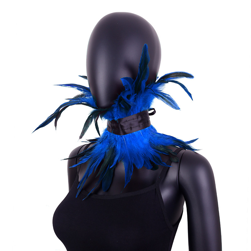 Accessori Samba del Carnevale 2026 Rio Carnevale Cappotto Sciarpa in Piume Blu Reale Nere con Pizzo per Donne Costume per Performance al Festival del Brasile