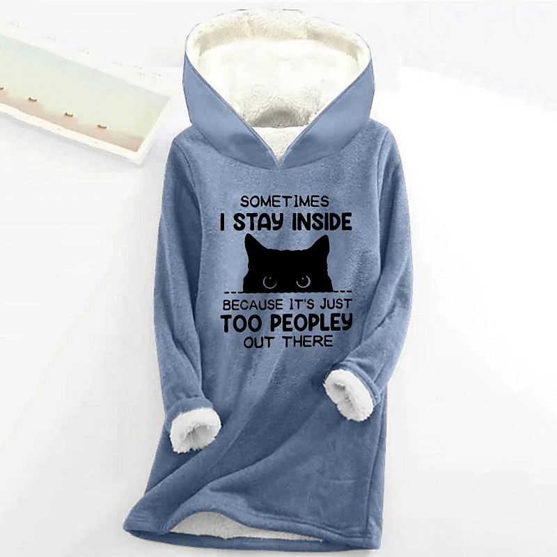 Women's Hoodie Sweatshirt Pullover Fleece Lined Warm Pajamas Sherpa Cat Letter Casual Sports Button Print Warm Funny Fuzzy Long Sleeve Top Micro-elastic Fall Winter Comfrt Breathable Soft Fabric