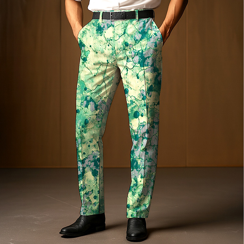 Men's Dress Pants Trousers Suit Pants Slim Fit Pants with Pockets Geometric Marble Abstract Art Full Length Outdoor Daily Holiday Casual Wine Blue Micro-elastic