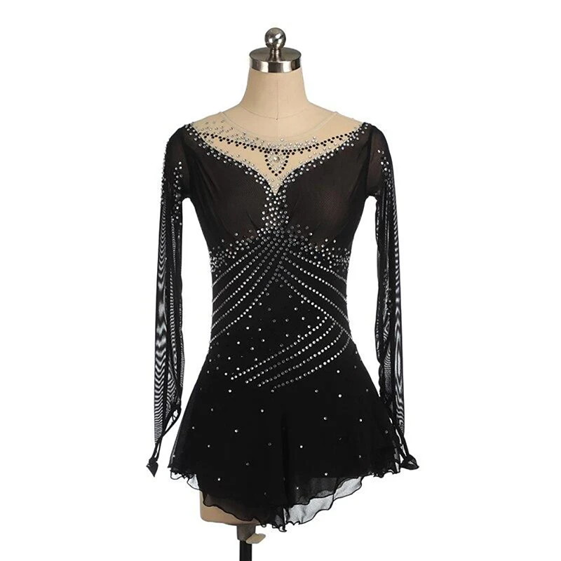 Figure Skating Dress Girls' Long Sleeves Competition Elegant Handmade Crystal Womens
