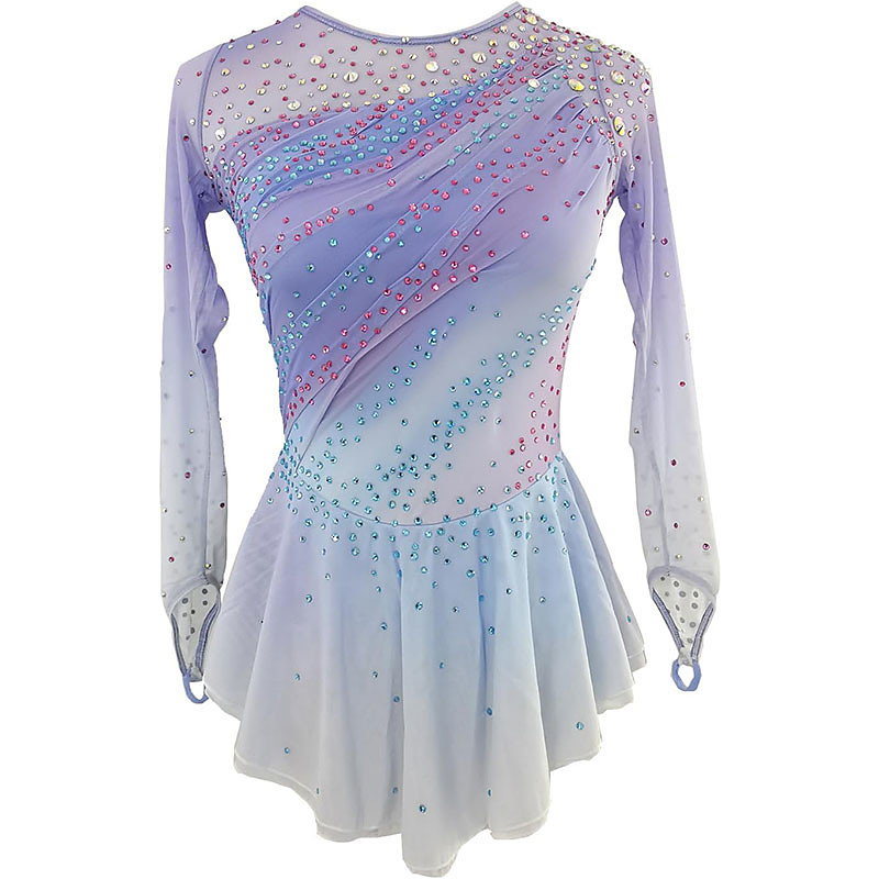 Figure Skating Dress Women's Girls' Ice Skating Dress Patchwork Asymmetric Hem High Elasticity Training Competition Skating Wear Classic Crystal / Rhinestone Long SleeveIce Skating Figure