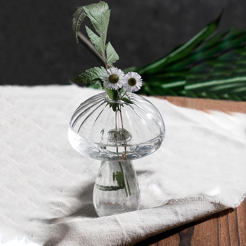 1PC Transparent Striped Glass Mushroom Decorative Vase A Glass Material Indoor Home Decoration Item Suitable for Hydroponic Flowers and Green Plants Home and Dining Room Flower Decoration and Display