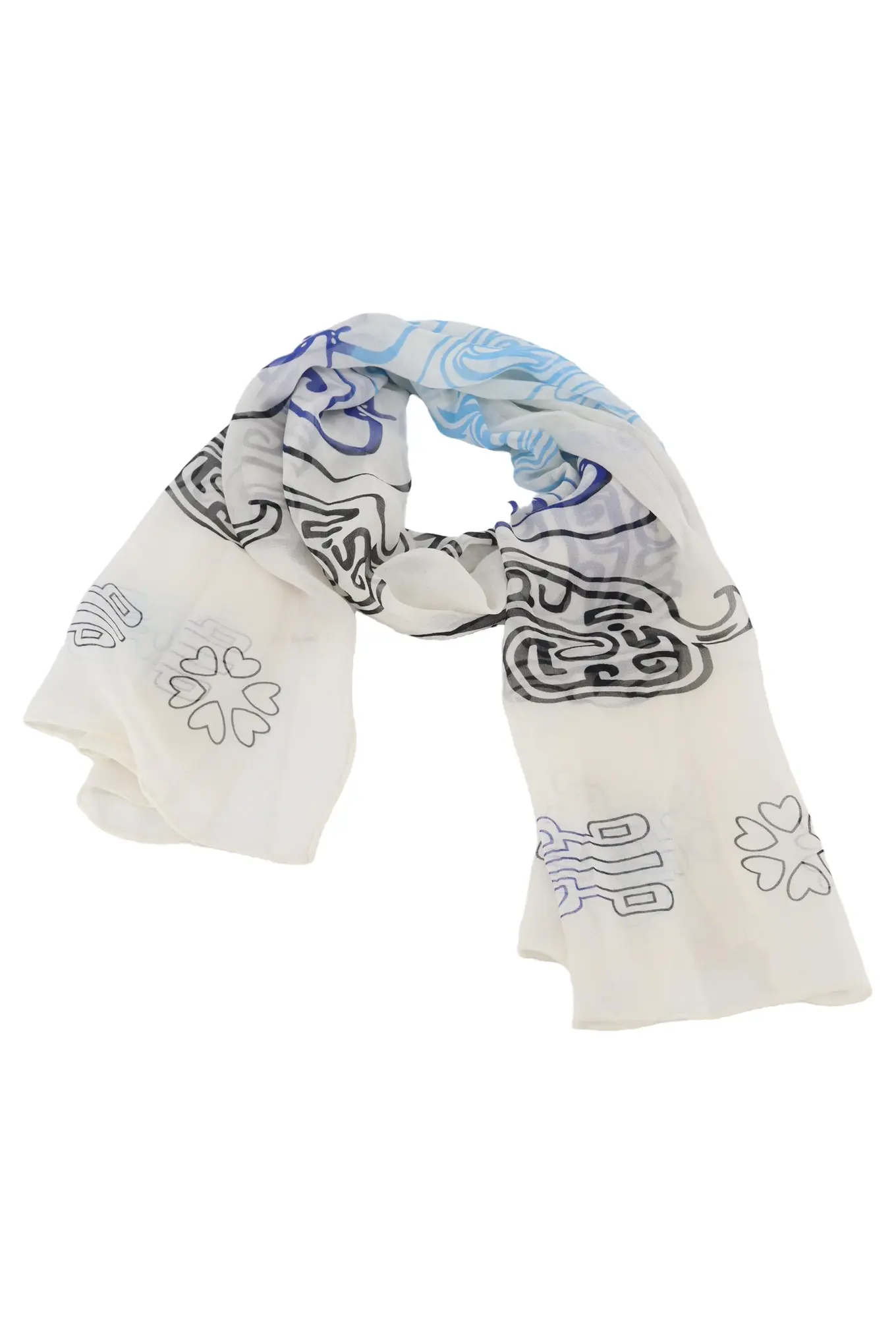 CITTÀ DELLA MODA Modeschal Damen Seide Weiß Blau Grau Gemustert