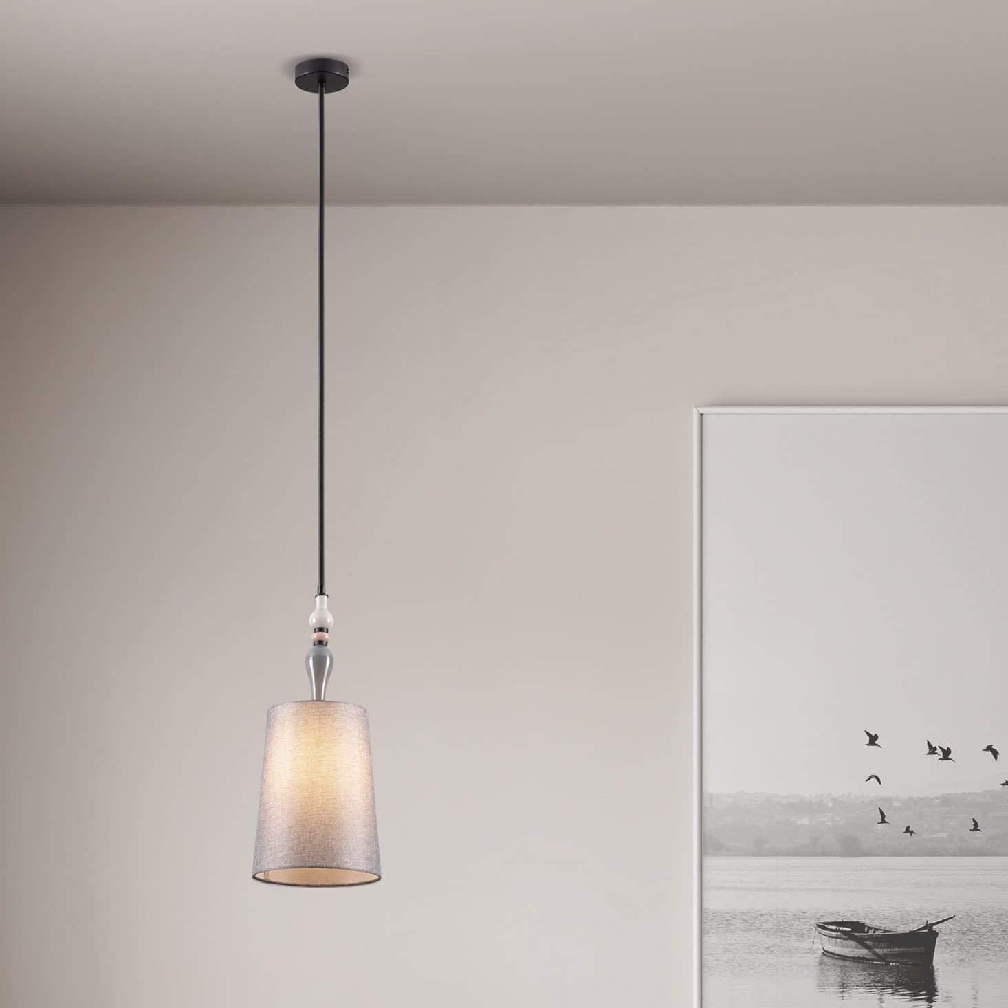 Nova Luce Damo - lampe suspendue - Ø 22 x 160 cm - noir mat, gris et brun