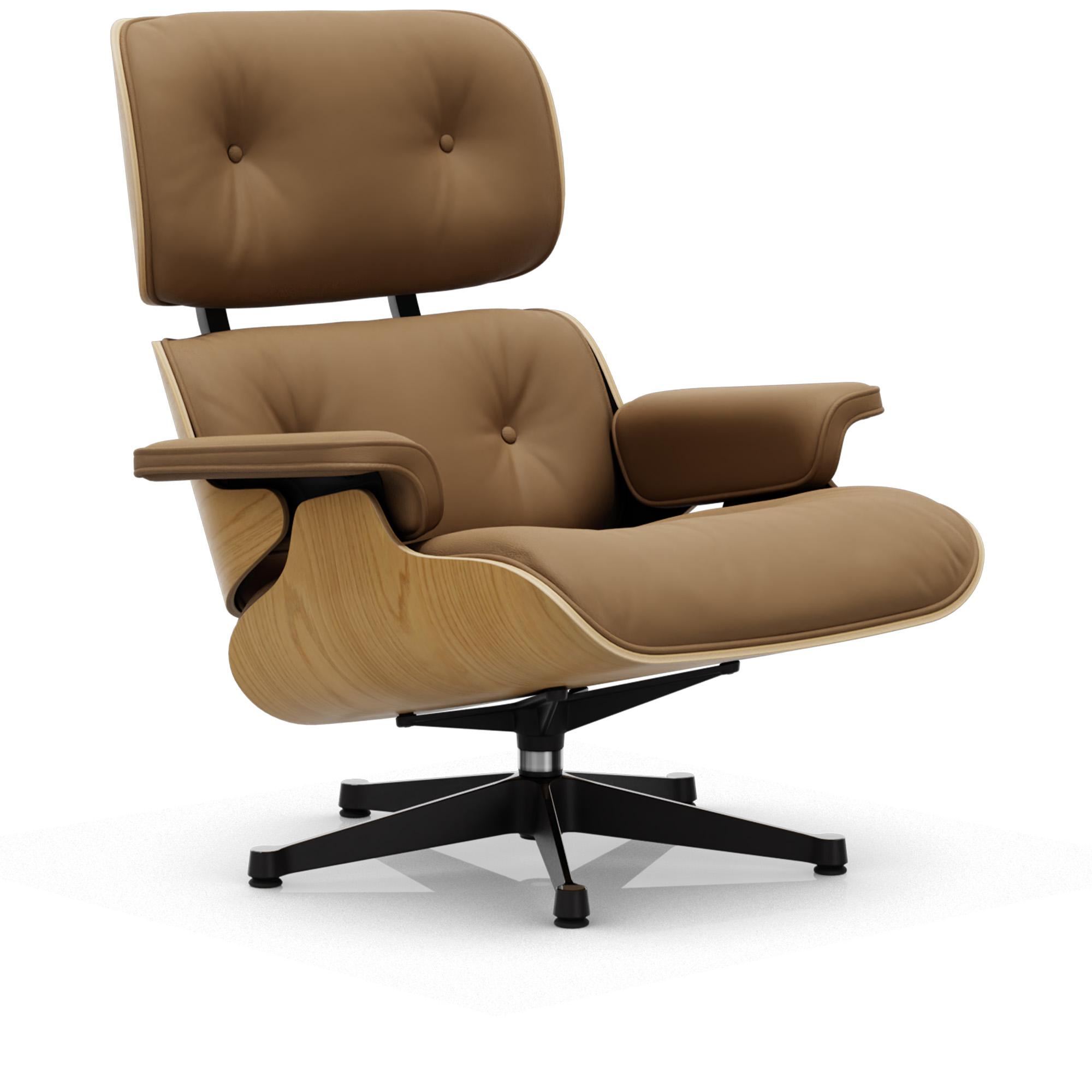 Vitra - Eames Lounge Chair Natural Chestnut Leather Premium Camel 75 Polished Aluminium/Deep Black - Fåtöljer - Charles & Ray Eames - Läder/Metall/Trä